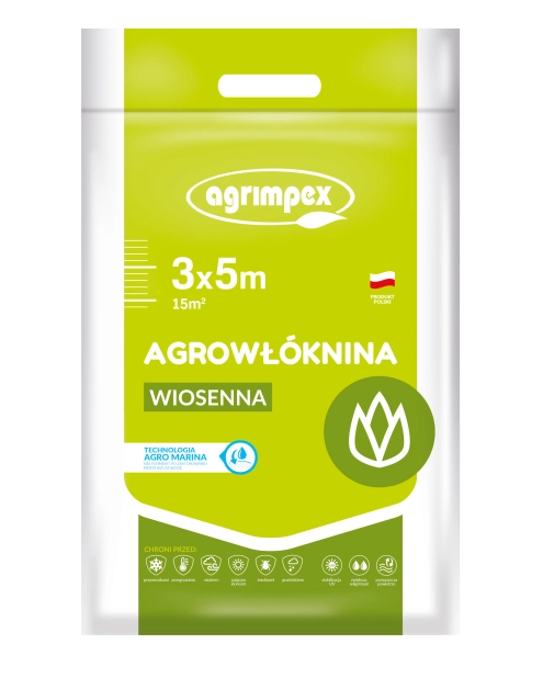 Agrowłóknina osłaniająca wiosenna Agro Marina to produkt wykorzystujący technologię, dzięki której materiał natychmiastowo przepuszcza wodę. Eliminuje to ryzyko przygniecenia roślin w przypadku wystąpienia obfitych opadów, w krótkim czasie po rozłożeniu materiału. Poprzez zwiększenie wilgotności pod okrywą i jednoczesne zapobieganie utracie wody glebowej Agrowłóknina skutecznie rozwiązuje problem niedoboru wody w gruncie, tworząc optymalne warunki dla wegetacji roślin. Produkt doskonale chroni przed przymrozkami, nadmiernym słońcem, porywistym wiatrem, gradobiciem i owadami. Agrowłóknina Agro Marina posiada grube i wytrzymałe włókna i wzmocniony brzeg. Na materiale widnieje znak zastrzeżony. Jest odporny na działanie promieni UV.