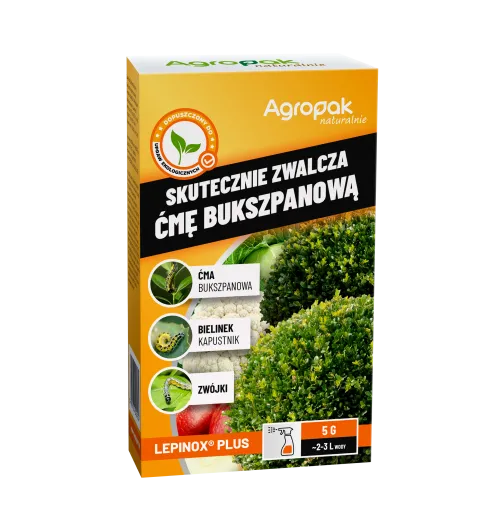 Lepinox Plus to nowoczesny, ekologiczny środek w formie proszku do sporządzania zawiesiny wodnej (WP), opracowany do skutecznej kontroli gąsienic motyli, takich jak ćma bukszpanowa. Dzięki zawartości bakterii Bacillus thuringiensis działa powierzchniowo na roślinach – po spożyciu przez szkodniki, gąsienice szybko przestają żerować i giną w ciągu 72 godzin, co zapewnia wysoką skuteczność. Idealny do ochrony warzyw, owoców i roślin ozdobnych; może być stosowany przez cały sezon wegetacji. Biodegradowalny i bezpieczny dla środowiska.