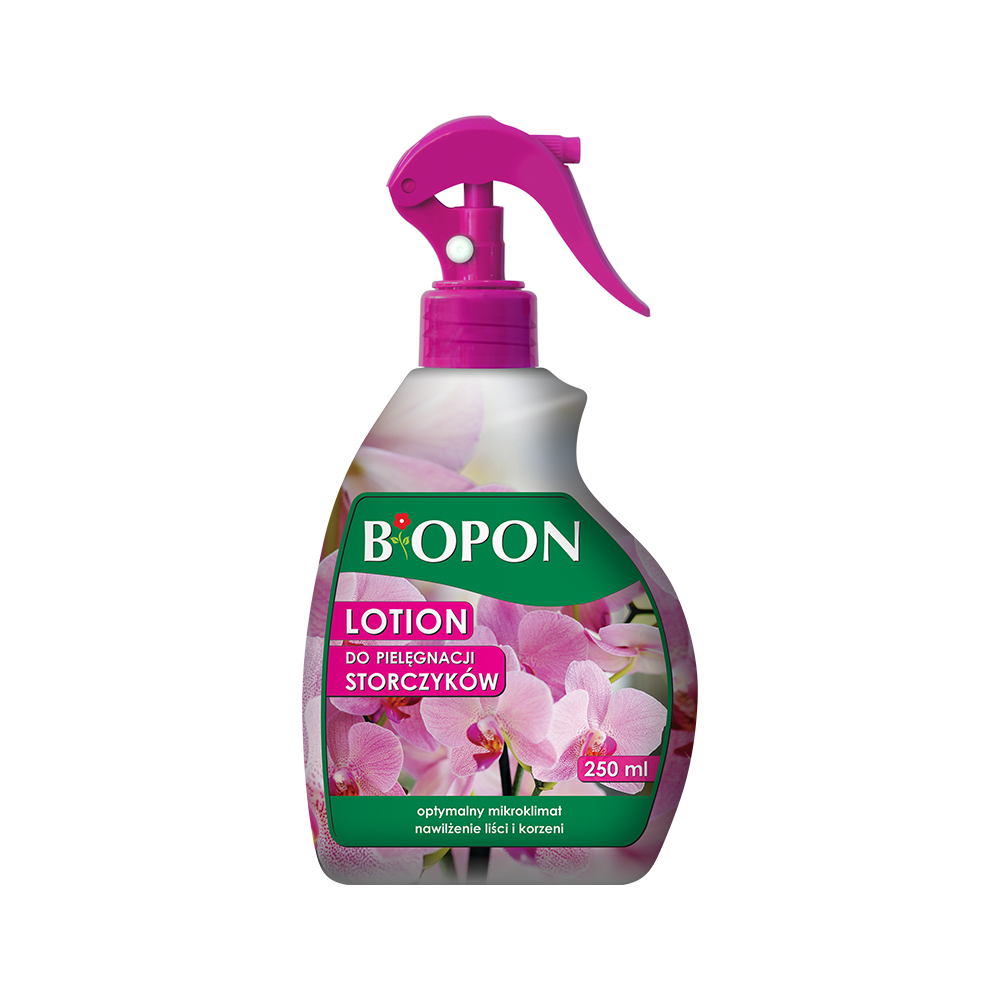 Lotion do pielęgnacji storczyków odpowiednio nawilża liście i korzenie powietrzne oraz pomaga w utrzymaniu optymalnego dla nich mikroklimatu. Szczególnie przydatny w okresie zimowym, kiedy powietrze w domu jest suche na skutek ogrzewania. Specjalnie dobrany skład preparatu utrzymuje storczyki w dobrej kondycji i stwarza im optymalne warunki do prawidłowego wzrostu i kwitnienia.