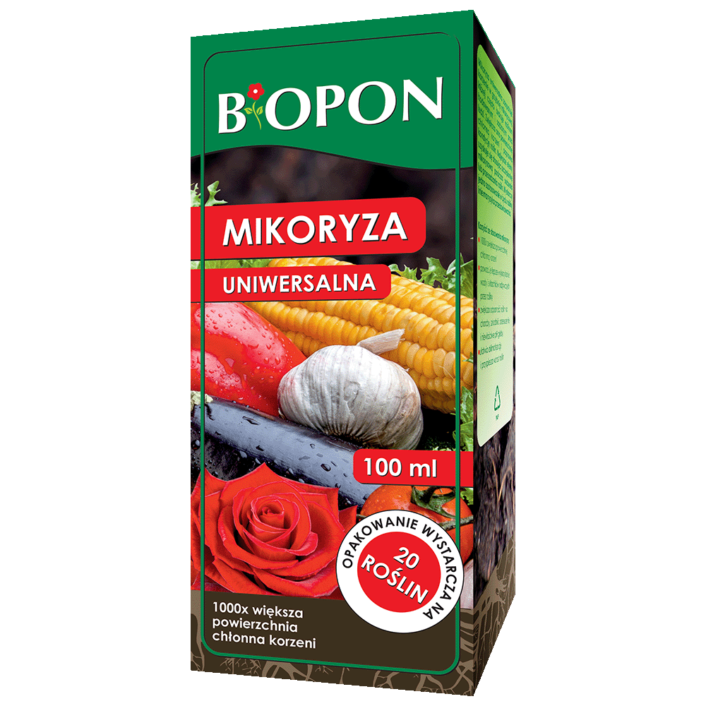 Mikoryza uniwersalna zaopatruje korzenie w grzybnię mikoryzową, której często brakuje roślinom hodowanym i sadzonym przez ludzi. Zwiększa ona powierzchnię chłonną korzeni i poprawia kondycję roślin. Najlepsze efekty uzyskuje się stosując szczepionkę mikoryzową podczas sadzenia lub przesadzania roślin. Wystarczy jedno zastosowanie w życiu rośliny i nie ma ryzyka przedawkowania.