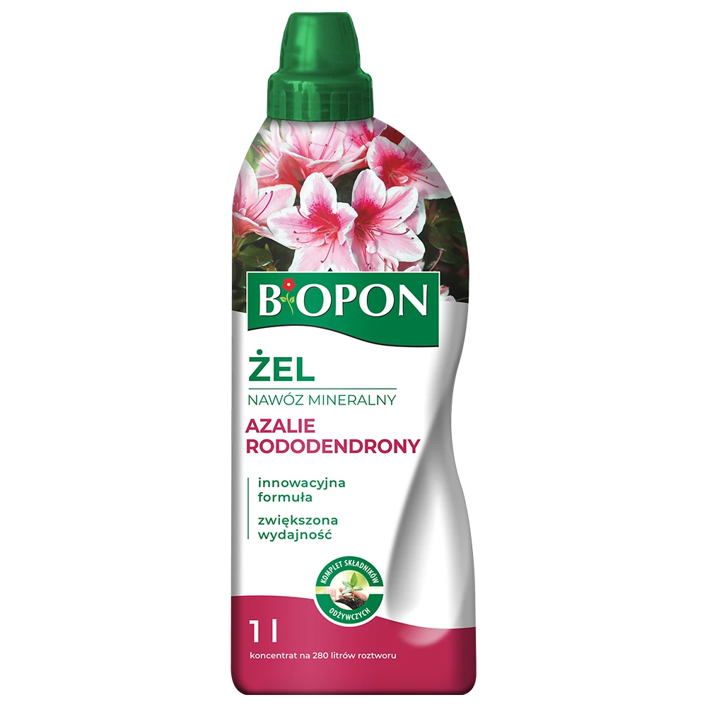 • Nowoczesny i wyjątkowo wydajny nawóz mineralny, przeznaczony do zasilania azalii, rododendronów i różaneczników. Specjalnie dobrane składniki mineralne wpływają na przedłużenie okresu kwitnienia i przyspieszają powstawanie pąków kwiatowych Gęsta konsystencja rozpuszczalnego w wodzie żelu sprawia, że nawóz jest łatwo przyswajalny przez rośliny i wygodny w użyciu. Nie rozpryskuje się przy nalewaniu i umożliwia precyzyjne dozowanie. Jego regularne stosowanie pomaga utrzymać kwiaty w doskonałej formie przez cały rok.