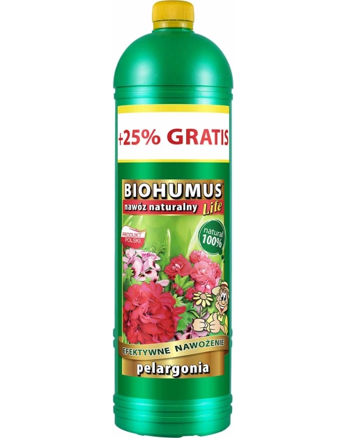 Płynny wieloskładnikowy nawóz naturalny przeznaczony do nawożenia kwiatów pelargonii. Nawóz uzyskiwany z hodowli dżdżownic kalifornijskich. Korzystnie wpływa na prawidłowy wzrost, rozwój i naturalne wybarwienie kwiatów. Dostarcza potrzebne składniki pokarmowe i poprawia kondycję roślin.