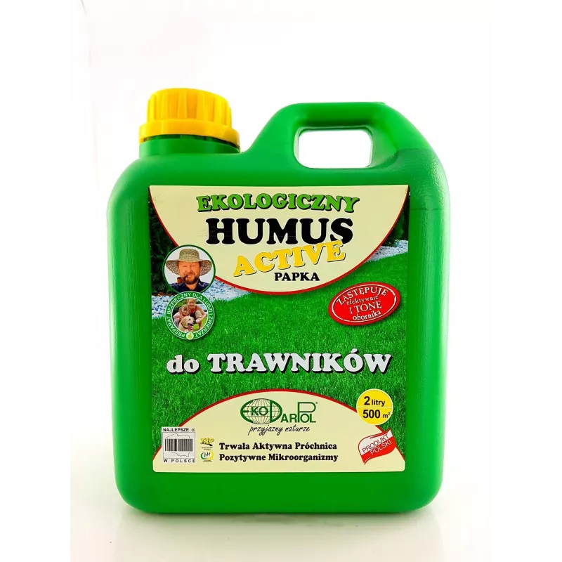 Nawóz w formie płynnej do rozrabiania z wodą. Powoduje dobre ukorzenienie traw. Wpływa na piękne wybarwienie trawnika. Badania EkoTech Produkt objęte programem unijnym dowodzą, że 2 L HUMUSU ACTIVE efektywnie zastępuje minimum 1 tonę obornika.