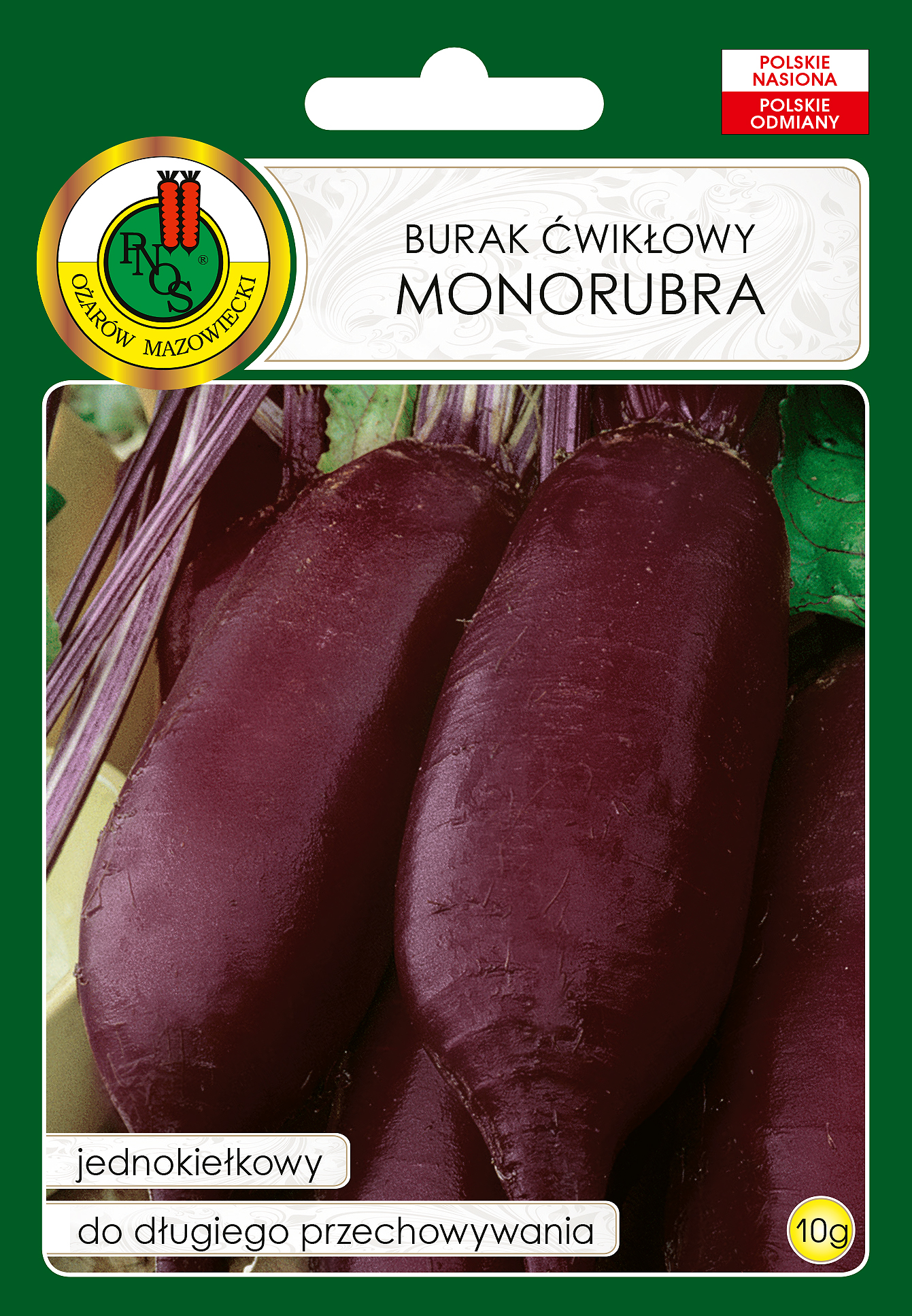 Późna odmiana o okresie wegetacji 130 dni. Monorubra to odmiana jednokiełkowa. Dzięki jednokiełkowości możliwe jest uzyskanie bardziej wyrównanych korzeni. Nie wymaga przerywania.