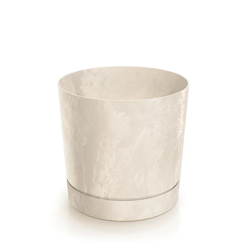 Tubo P Beton Effect to doniczka o tradycyjnym, cylindrycznym kształcie, która dzięki nowoczesnemu wykończeniu z efektem betonu zyskuje industrialny i designerski charakter, idealnie pasujący do współczesnych aranżacji wnętrz. Doniczka wyróżnia się wykończeniem subtelnie nawiązującym do architektonicznego betonu, stonowanymi kolorami oraz proporcjami, które nadają jej eleganckiego wyglądu. Wyposażona jest w doczepianą podstawkę w kolorze doniczki.