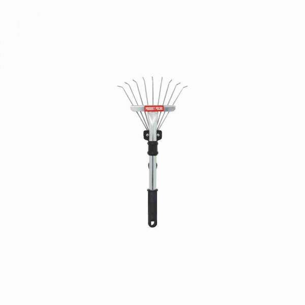 Grabki druciane 9-zębne, stosowane w ogrodnictwie do grabienia liści, skoszonej trawy, siana i innych prac porządkowych. Wykonane ze sprężystych, metalowych prętów, zamocowanych z jednej strony na stylisku, z drugiej rozchylone tworzą wachlarz długich sprężystych zębów. Rozstaw jest regulowany, co pozwala dostosować zęby do określonych prac ogrodowych. Grabie są solidne, estetycznie wykonane. Idealne do porządkowania ogrodu, szczególnie wiosną i jesienią. Wymiary: * wysokość: 32 cm; * regulacja szerokości: ok. 12 – 20 cm.