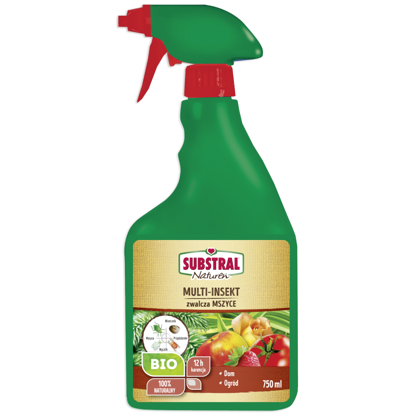 Substral Multi – Insekt to 100% naturalny preparat zwalczający szkodniki takie jak: mszyce, tarcznik, misecznik i inne owady. Preparat kontaktowy – działa fizycznie tworząc powłokę blokującą dopływ powietrza. Forma sprayu gotowego do użycia. Preparat stosuje się do kwiatów, owoców, warzyw. Można spożywać opryskane owoce w tym samym dniu. Dwa okresy stosowania – wczesno wiosenny do zwalczania jaj i larw owadów oraz późno wiosenny do zwalczania postaci dorosłych owadów.