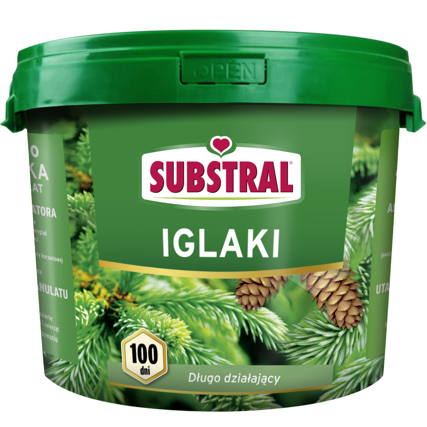 Doskonałe efekty w postaci wspaniale kwitnących roślin i bujnie rosnących iglaków uzyskuje się dzięki ciągłemu dokarmianiu roślin w jednakowej dawce przez cały sezon. Substral 100 dni to długo działający nawóz do iglaków, który stosuje się przy sadzeniu i nawożeniu już rosnących iglaków i innych roślin kwaśnolubnych. Najlepsze efekty uzyskamy nawożąc iglaki, rododendrony, azalie, kamelie, magnolie, hortensje, wrzosy, borówki amerykańskie przez cały sezon. Odpowiednio dobrane składniki nawozu 100 dni spełniają wymagania tych roślin i gwarantują widoczne efekty w sezonie. Nawóz po rozsypaniu i podlaniu powoli rozpuszcza się i przechodzi do wierzchniej warstwy gleby, gdzie pozostaje przez okres do 100 dni i jest pobierany przez korzenie. Uwalnianie nawozu jest sterowane przez czynniki naturalne. Rośliny otrzymują codziennie małą, dostosowana do ich potrzeb dawkę składników odżywczych. Dzięki temu nawóz działa bardzo długo, bo ponad 3 miesiące – wystarczy więc jedno lub dwa nawożenia na sezon, bez ryzyka przenawożenia. Nawóz jest bardzo wydajny, rośliny potrafią wykorzystać nawet do 70% składników pokarmowych w porównaniu do zwykłych granulatów, gdzie sięga to zaledwie 25%.