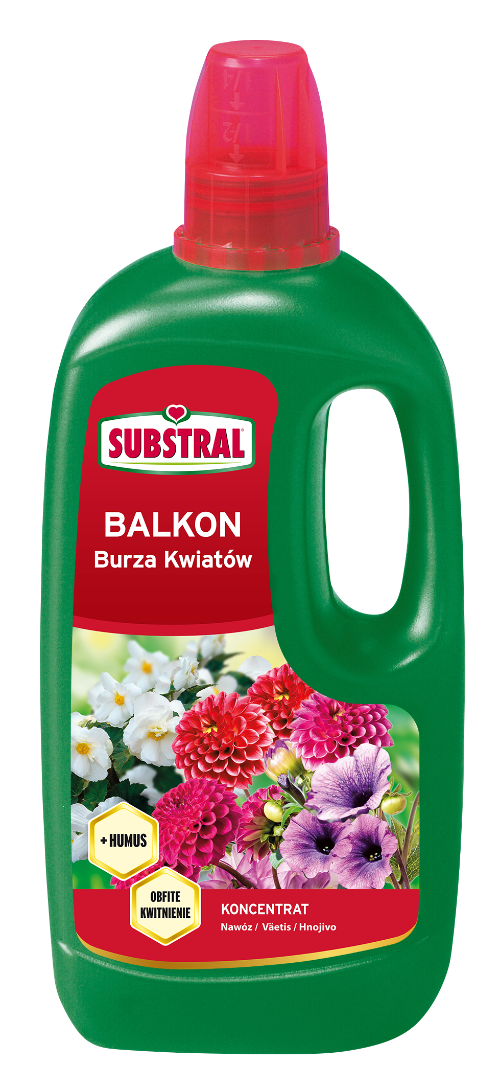 Specjalistyczny nawóz w płynie szczególnie polecany do Surfinii i Pelargonii. Odpowiednio dobrana mieszanka potasu i fosforu wspomaga tworzenie się pąków i przedłuża kwitnienie roślin balkonowych. Odpowiednio zbilansowany zestaw makro i mikroelementów spełnia wymogi każdej z grup roślin zapewniając zdrowy wzrost. Specjalna formuła pozwala na całkowitą i szybką absorpcję nawozu, tak aby utrzymać rośliny w pełnym zdrowiu, by były silniejsze i lepiej kwitły. Nawóz ma postać koncentratu, którym należy podlać rośliny po uprzednim rozcieńczeniu. W wygodny i prosty sposób pozwala to łączyć podlewanie z nawożeniem. Nakrętka ułatwia precyzyjne dozowanie nawozu.