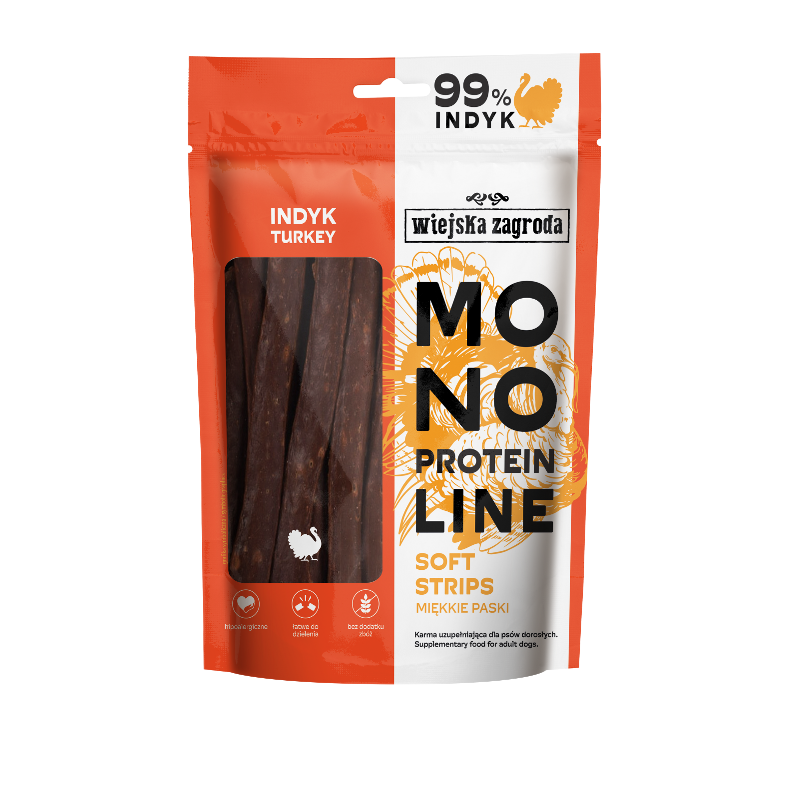 Napisz pierwszą opinię o „WIEJSKA ZAGRODA PRZYSMAK DLA PSA MONO INDYK PASKI 100G”