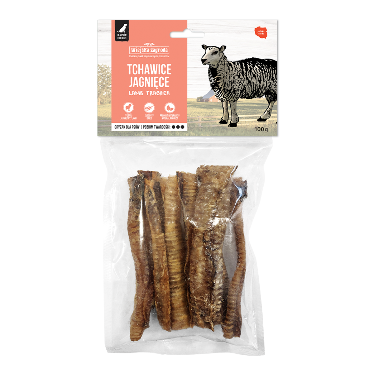 Wiejska Zagroda Monoproteinowe Gryzaki Suszone Tchawica Jagnięca to naturalna, zdrowa i wyjątkowo smakowita propozycja dla Twojego psa. Produkt stworzony został z myślą o psach, które potrzebują lekkostrawnych, funkcjonalnych przysmaków opartych na jednym źródle białka zwierzęcego – jagnięcinie. Dzięki swojej unikalnej strukturze i bogactwu składników odżywczych, suszona tchawica jagnięca stanowi doskonałe uzupełnienie codziennej diety dorosłych psów.